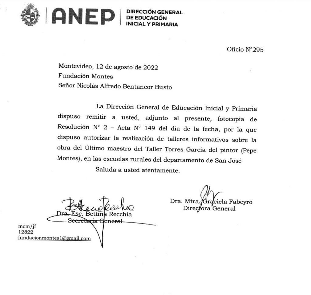 Resolución de ANEP para que la Fundación Montes realice los talleres en las Escuelas rurales